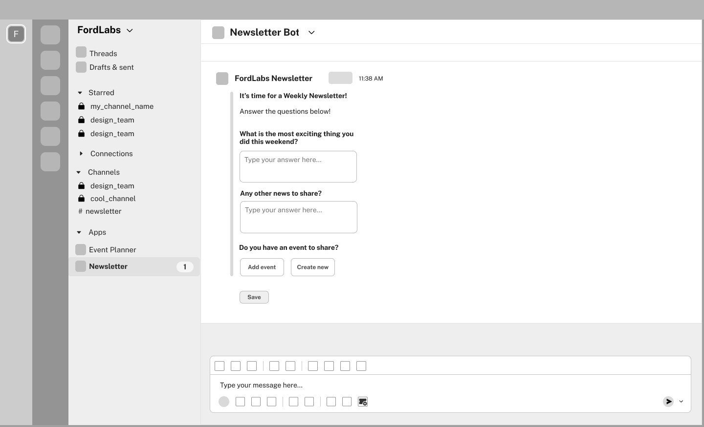 To encourage company-wide connections and natural social interactions, we experimented with adding a newsletter to existing communication platforms that would allow for casual discussion.